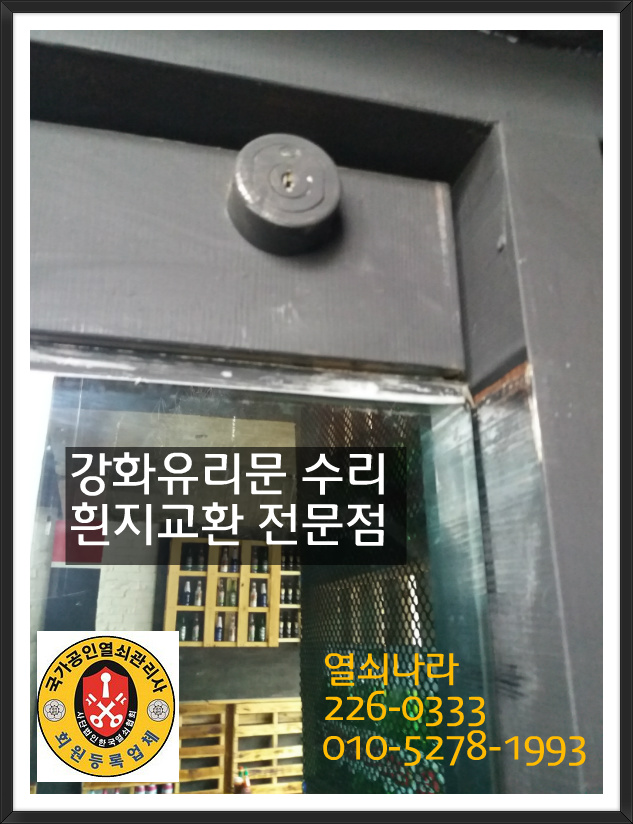 현장실사를 해 보니 유리문의 상부바가 내부 부식으로 인해 강화유리와 분리가