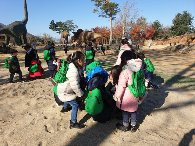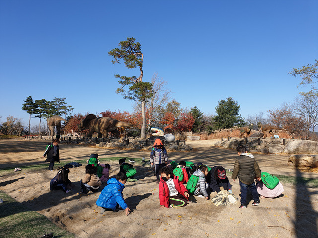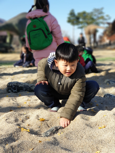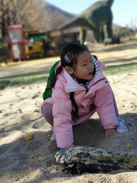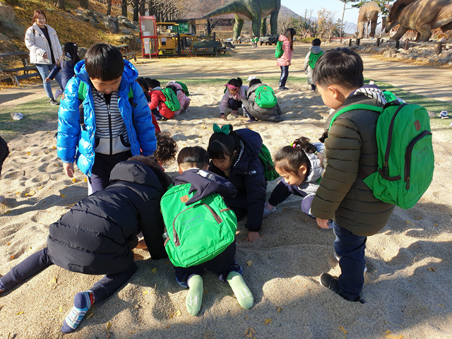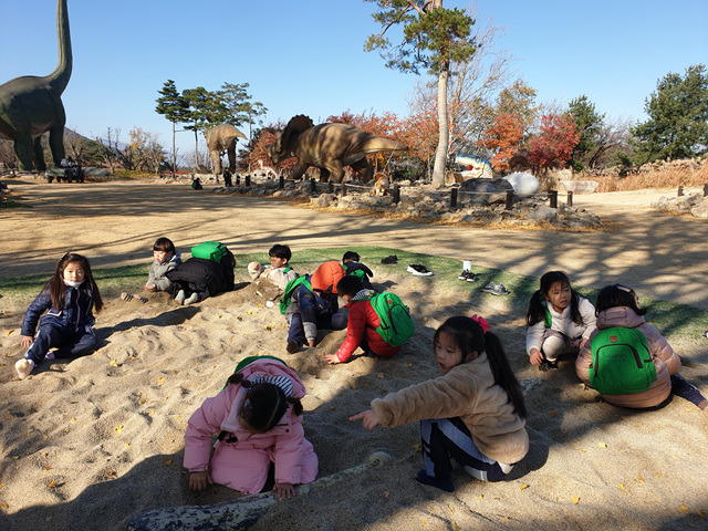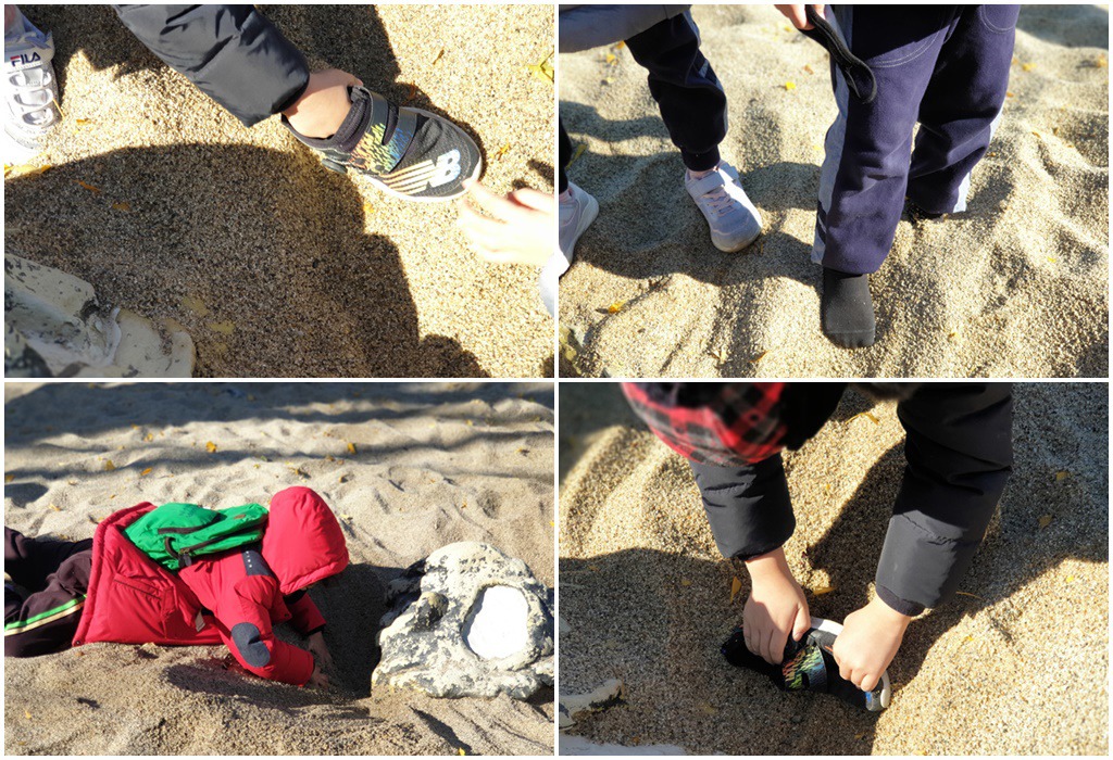 모래에 묻힌 공룡화석(?)이 아이들을 이렇게