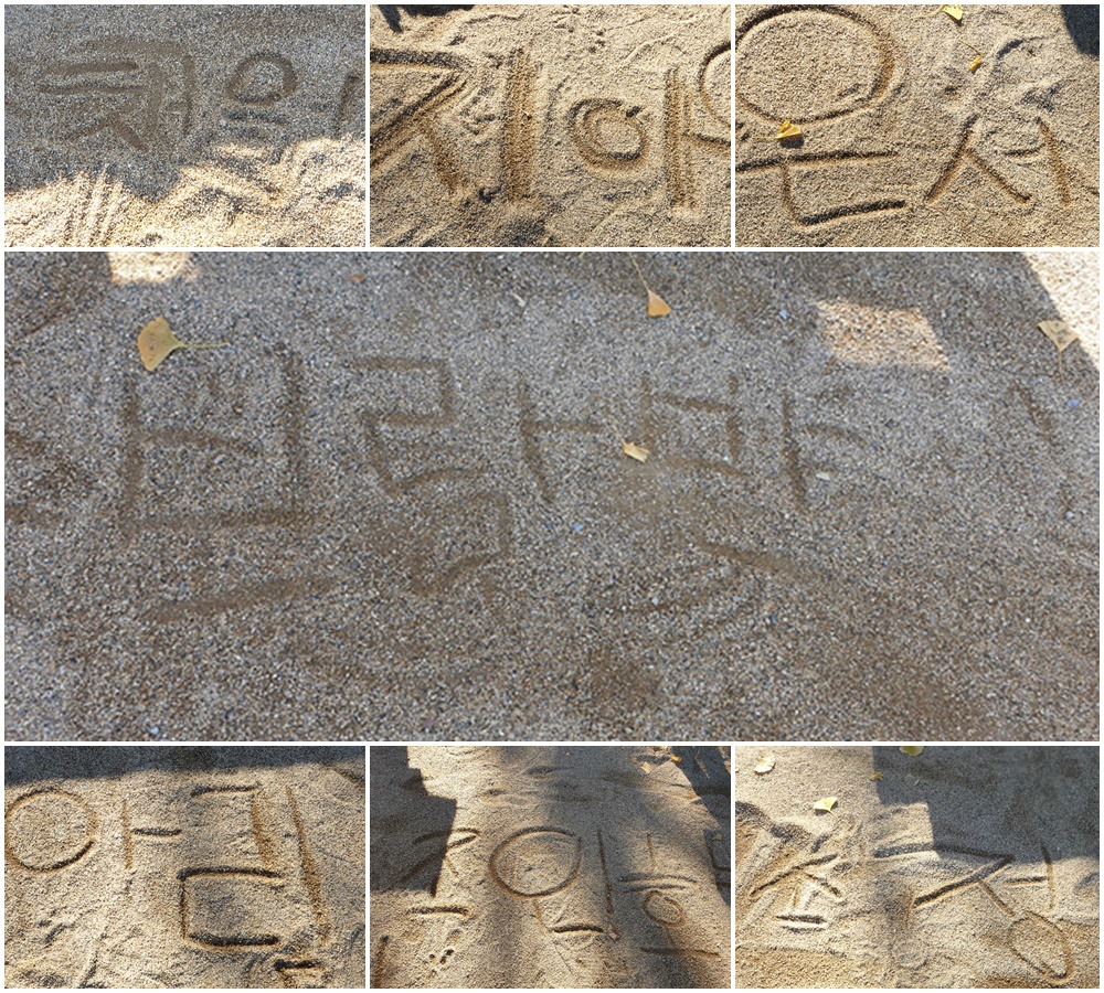모래위에 내 이름 친구이름 적어보는 아이들....