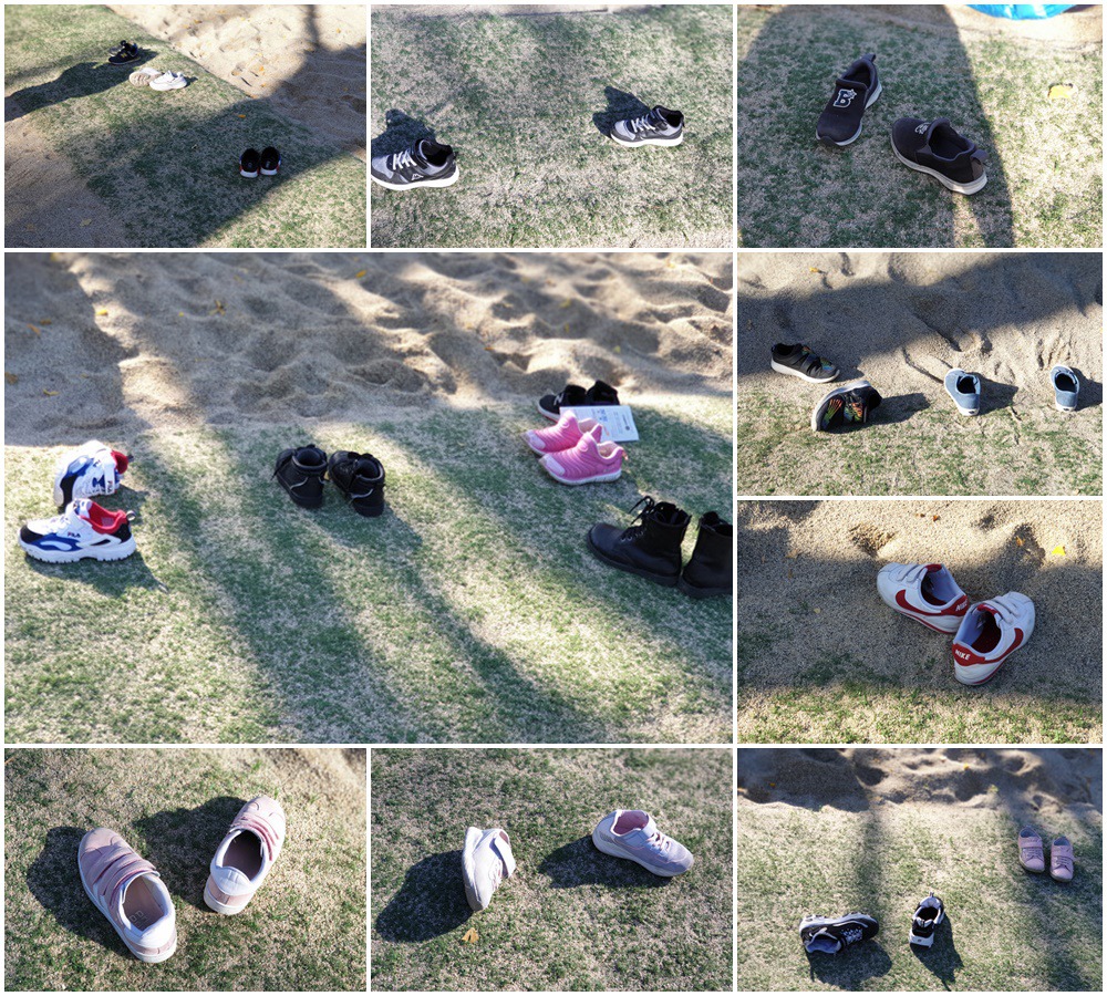 아이들은 하나, 둘 신발을 벗기 시작합니다.