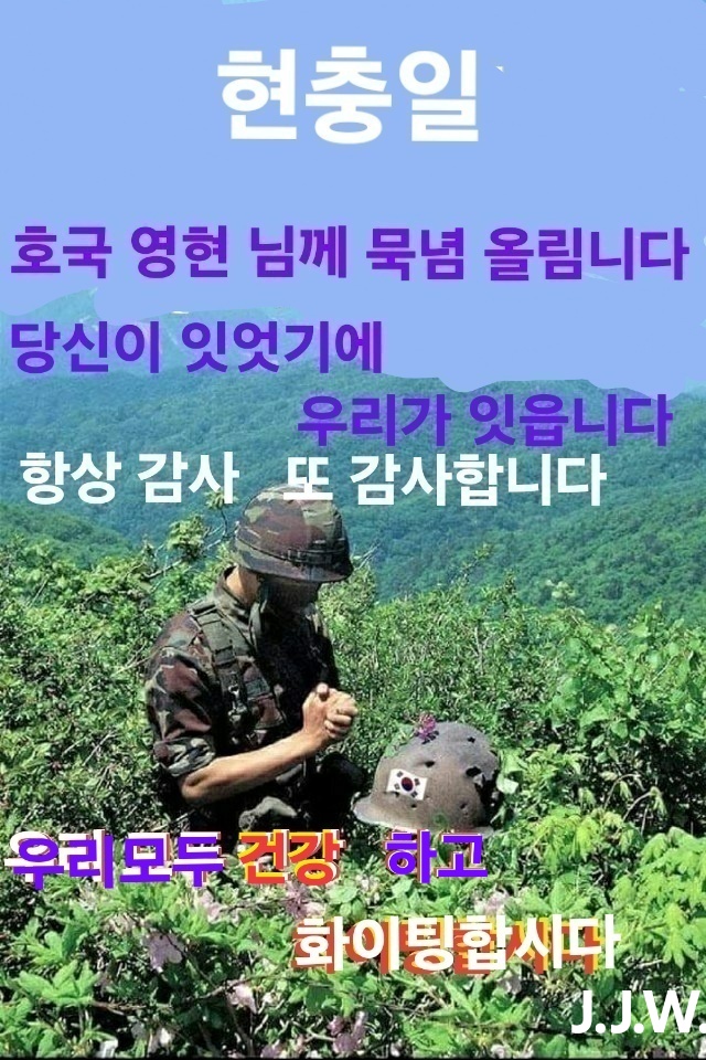 현충일 작성자바울|작성시간25.06.06|조회수17 목록 댓글 1 글자크기 작게가 글자크기 크게가 다음검색 현재 게시글 추가 기능 열기 북마크 공유하기 신고 센터로 신고 댓글 댓글 1 댓글쓰기 답글쓰기 댓글 리스트 작성자손복순 | 작성시간 25.06.06 행동이 아니고 마음으로 묵념!!! 댓글 전체보기