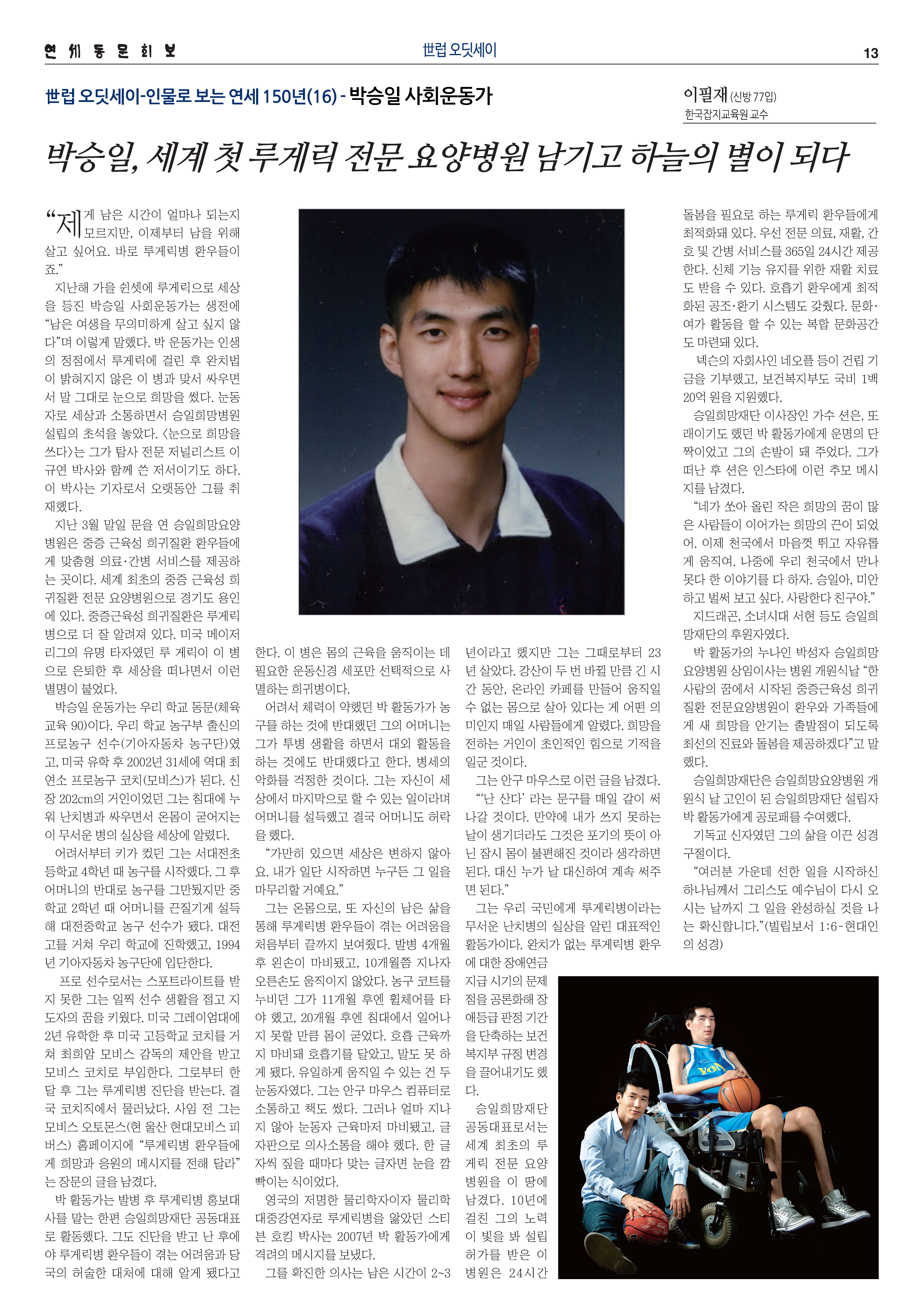 작성자아카라카 작성시간 25.06.22 박승일 님 검색 하다 보니 나 와 동문 이더군요,, 그래서 더욱 마음이 가네요 일명 루게릭 병 에 대해 많은것을 남기신 박승일 님에게.. 감사 드리며..