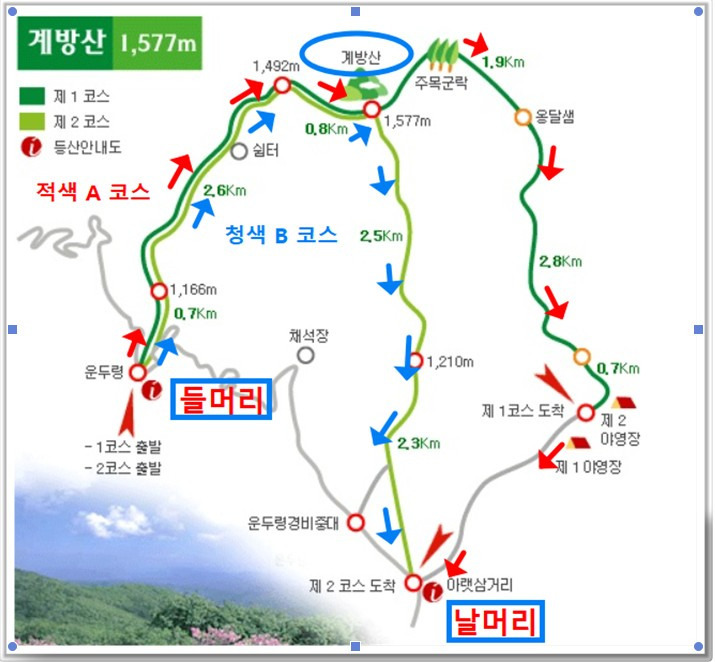 b코스ㅡ운두령~쉼터~계방산~아랫삼거리(9KM)4시간30분)