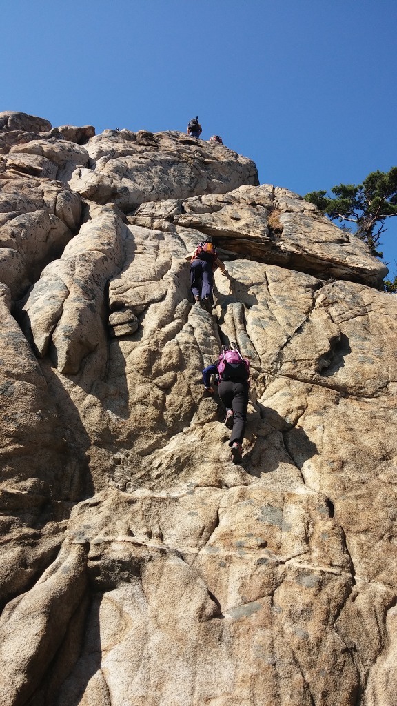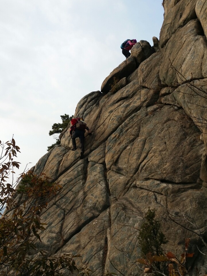 미소여성회원이신 안개꽃님 희망님이 암릉 넘고 계시네요