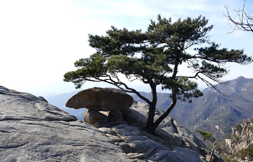 정상 바위위에서 시원한 봄바람에 스트레스 날려버려야죠