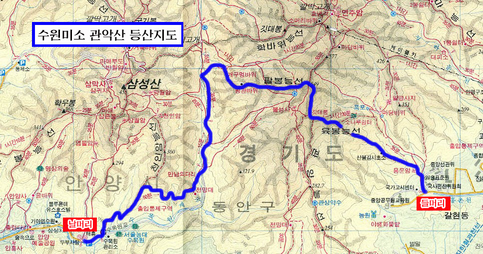 산행코스: 정부청사역 7번출구~용운암~육봉능선~팔봉능선~안양유원지