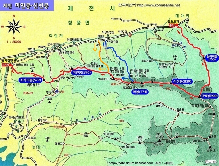 b코스ㅡ갑오고개~단백봉~신선봉~학봉~학현슈퍼(여유롭게 4시간30분)