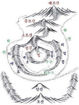 기가 세지도 않고 생기가 모아져 명당자리가 될 수 있는 땅은 물과 만나 산맥이 더이상 나가지 못하고 멈춘 능선 끝자락(혈·穴)이다. 이를 테면 강남은 관악산의 기가 내려오다 한강과 만난 끝자락이고 용산은 북한산의 기가 내려오다 한강과 만난 끝자락이다. 좋은 땅은 높은 곳보다 낮은 곳에 있다는 얘기다.