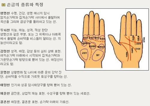 ★ 오른손 : 자신의 미래와 운을 보고 싶을때, 미래의 직업과 사회적 활동등 두뇌와 연관성있을 때