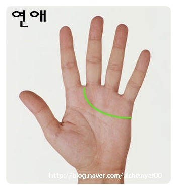 감정선의 활모양으로 곡선을 이루고 끝이 상향한다면 연애결혼의 확률이 높다.
