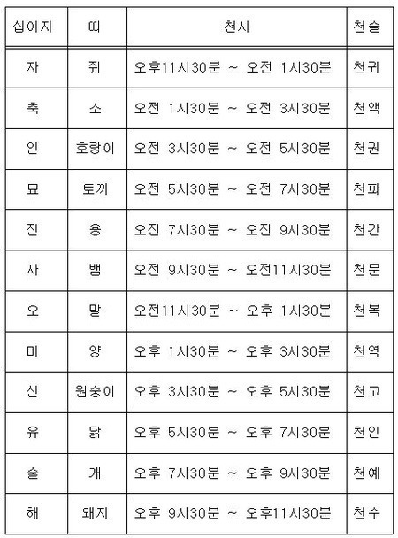 4월생이므로 호랑이띠(범띠) 자리인 "인"에서 시작하여 4번째 천문