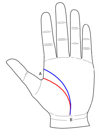 운명선은 A를 시작점으로, B를 종착점으로 보는데