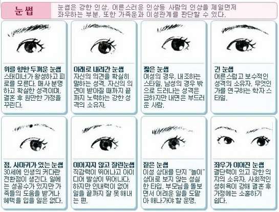 - 눈 관상 : 얼굴의 인상의 절반이상을 차지하는 부분이 눈입니다.