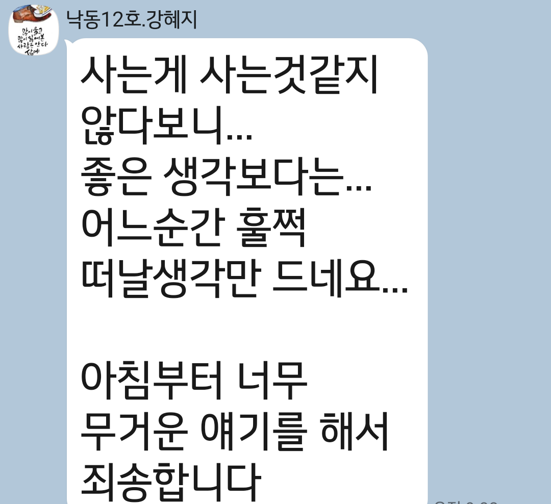 위 글은 어제 강혜지 시인과 나눈 대화 내용입니다.