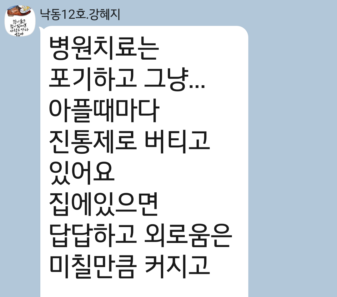 병원 치료도 포기한 상태라고 합니다.
