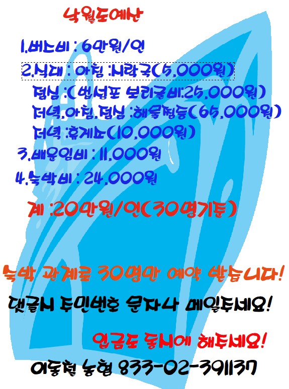 30명 한정예약(숙박시설 관계로)