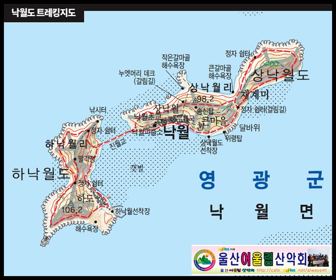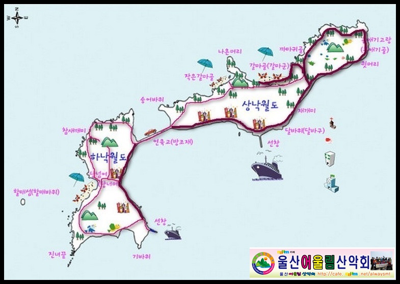 ▶코스: 상낙월도 선착장 -> 위령비 -> 제계미 해변 -> 전망대 ->
