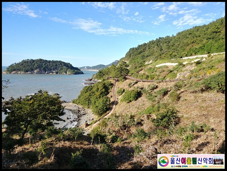-> 진월교 -> 낚시터(외양마지) -> 둘레길 -> 당너메 해변->