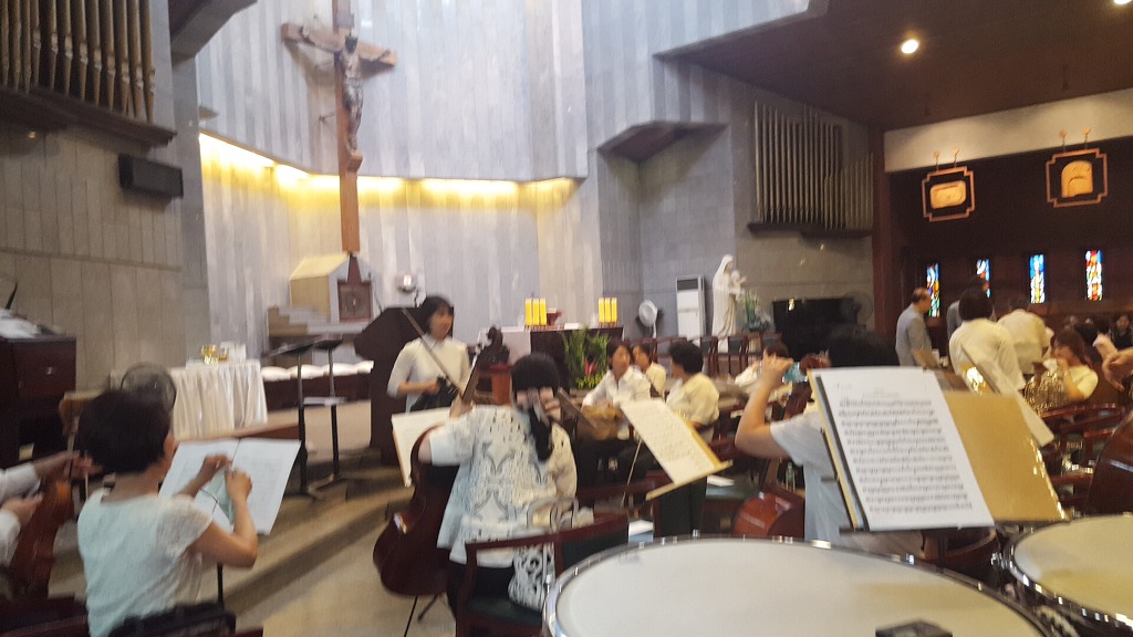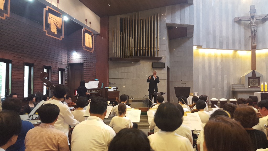 신수동성당안에서의 연합합창단과 함께하는 축하미사는