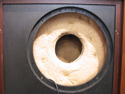 탄노이 코너요크 실버 12인치 오리지날통 내부 흡음제 모습입니다