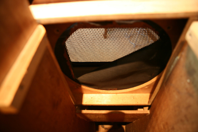 탄노이 코너 요크 실버 12인치 오리지날통 내부 흡음제 모습입니다