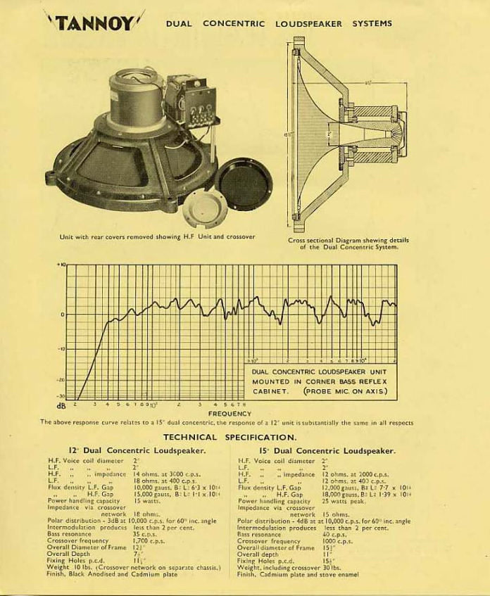 - 고충실 하파이 사운드에 대한 요구는 당연히 광대역 고특성 재생음을 무기로 내세우던 탄노이 특유의 듀얼 콘센트릭 사운드에의 관심 집중을 불러일으키게 되었고, 이에 따라 탄노이 스피커는 발전을 가속화하게 된다.
