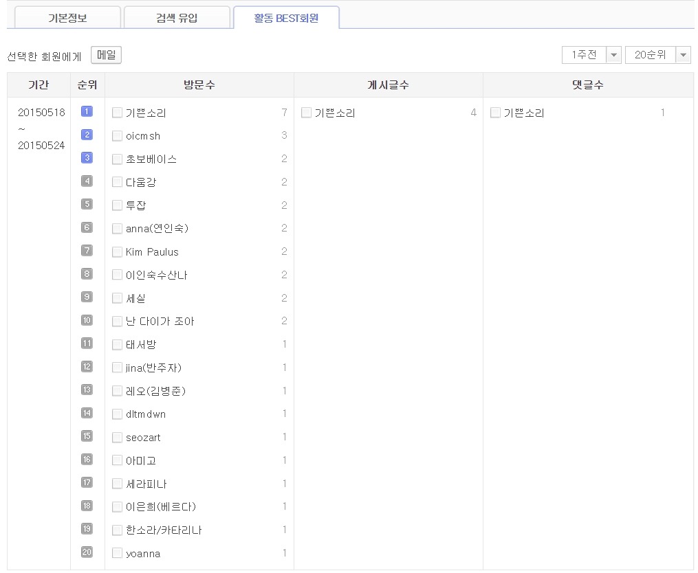 주간 BEST 활동회원(05.18~05.24) 작성자기쁜소리|작성시간15.05.26|조회수21 목록 댓글 0 글자크기 작게가 글자크기 크게가 다음검색 현재 게시글 추가 기능 열기 북마크 공유하기 신고 센터로 신고 댓글 댓글 0 댓글쓰기 답글쓰기 댓글 리스트