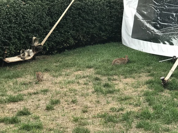 [갈색 산끼키가 두마리가 뛰어다니고 있다.. 나를 쳐다보며 도망갈 자세는 취하지만.. 도망치지는 않는다]