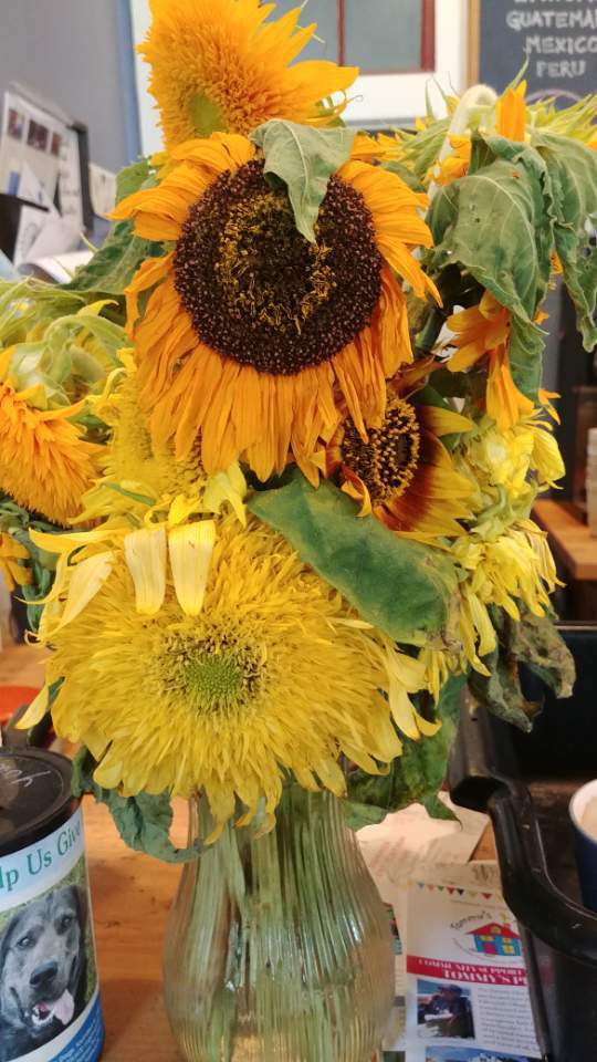 [다운타운에 있는 커피집에 장식된 꽃병 속 해바라기.. 고호의 해바라기가 보인다며..]