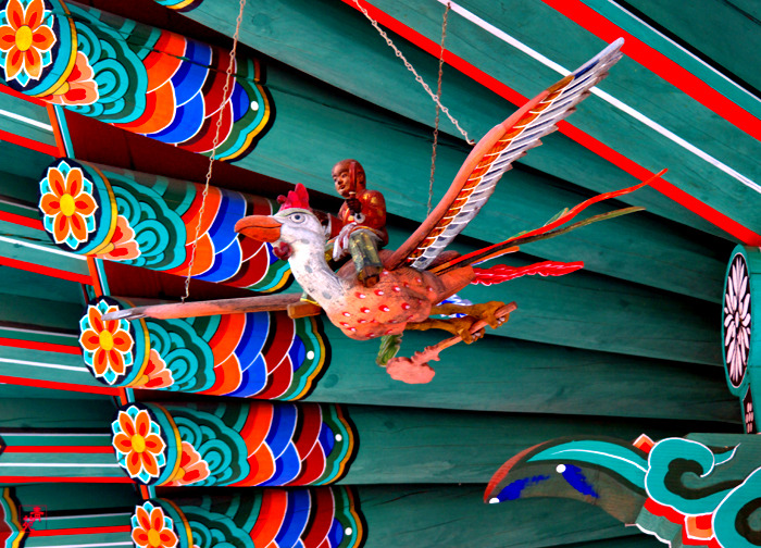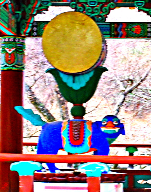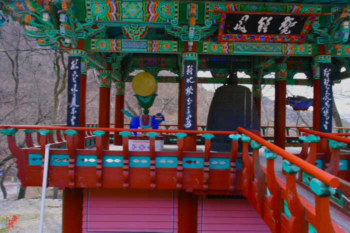 범종각(梵鐘閣) / 범종각은 환학루 옆에 있으며, 팔작지붕에 앞면 4칸, 옆면 3칸의 규모로 최근에 지어졌다. 해태상 법고 / 해태는 옳고 그른 것을 판단하여 부처님 진리의 법을 수호하는 동물이라고 합니다.