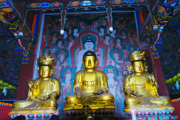 내부의 석가모니부처님과 문수 보현보살님의 등상은 단아하며 섬세하고 그윽한 모습이 경외감을 갖게하고 자신을 되돌아 보게하는 불보살님으로 근래에 보기드문 미소를 지니고 있다, 또한 신중단에는 한국에 유일한 제석천왕님과 대범천왕님이 등상불로 모셔져 있는데 이 또한 보는순간 마음을 가다듬는 신장님이 계시는 곳이다.