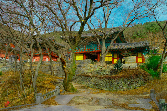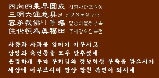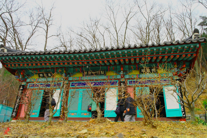 나한전(羅漢殿) / 나한전은 부처님의 제자인 나한을 모시는 법당으로 요사인 응향전 뒤쪽 한 단 높은 곳 칠성각 옆에 자리한다. 조선시대 후기에 지었으며 맞배지붕에 앞면 3칸, 옆면 1칸의 규모를 하고 있다. <주련> 四向 : 견도향(見道向), 정류향(頂流向), 일래향(一來向), 불환향(不還向) 四果 : 수다원과(須陀洹果), 사다함과(斯陀含果), 아나함과(阿那含果), 아라한과(阿羅漢果) 三明 : 숙명통, 천안통, 누진통 六通 : 육신통력이라고도 함. 三明에 천이통,타심통,신족통을 더한 것