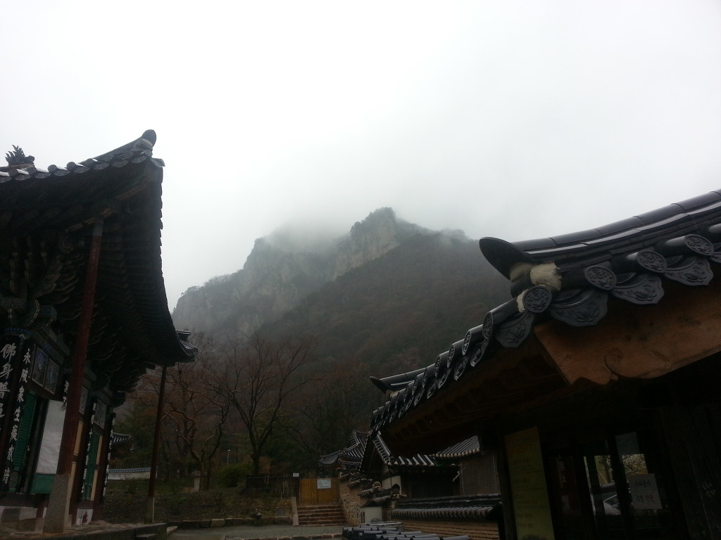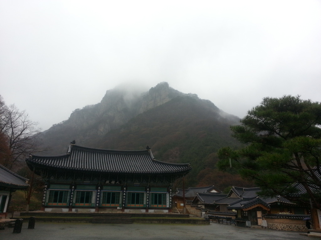 산 머리를 휘감은 운무의 움직임이 산사를 찾은 마음을 감탄에 이르게 합니다.