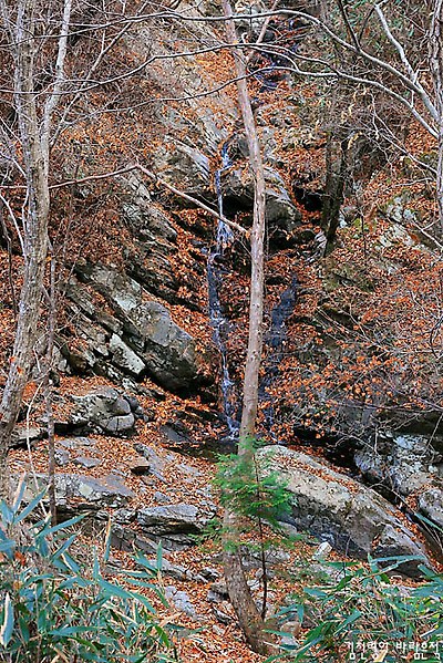 계곡 절벽 아래 있는데, 산길에서는 숲에 가려 보이지 않았다.