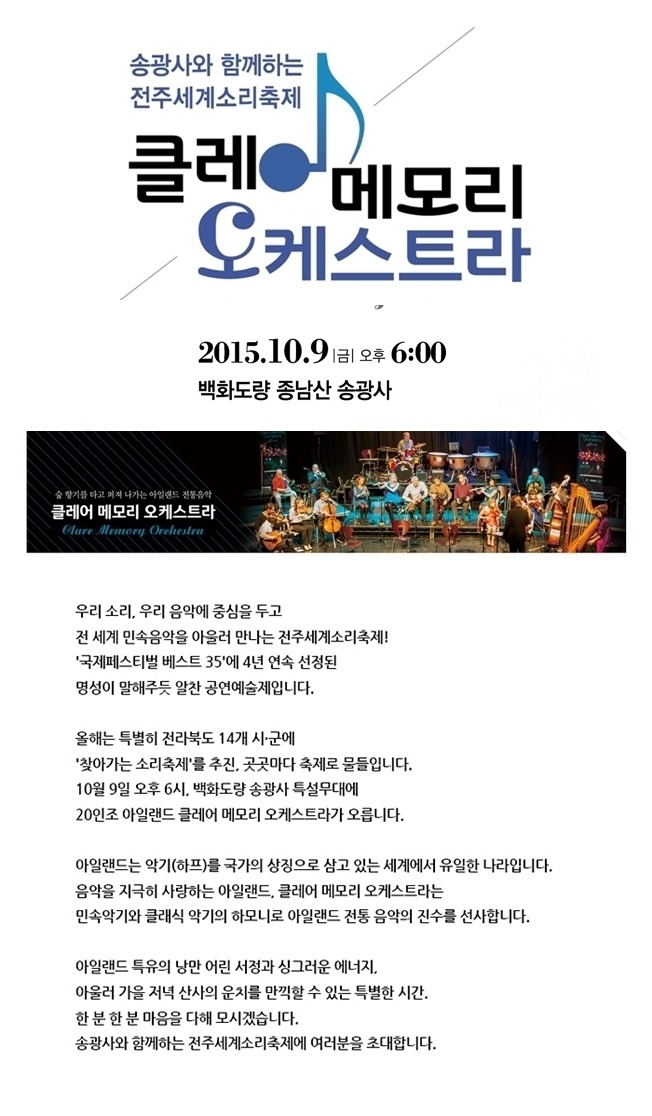 전주세계소리축제와 천년고찰 백화도량 송광사가 만납니다.