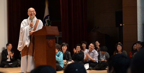 법륜스님의 전국연속 100회 강연이 벌써 80회 째를 찍고 종반부를 향해 달려가고 있습니다. 지난 9월28일부터 하루도 쉬지 않고 매일 오전과 오후 전국 구청을 순회하며 ‘즉문즉설’ 강연이 진행되고 있습니다. 참석자들은 부부 갈등, 이혼 문제, 자녀 교육, 남북관계, 양극화 문제 등 개개인의 온갖 고민들을 법륜스님에게 질문했고, 법륜스님은 늘 지혜로운 답변을 들려주었습니다. 저는 관악구민회관에서 열렸던 강연에 참석했었는데, 친한 친구의 죽음이라는 슬픈 일을 겪고 어떻게 살아가야할지 막막해 하던 한 친구의 질문이 너무나 가슴 아팠습니다. 하지만 법륜스님의 대답을 듣고 질문한 친구도 환한 웃음을 보였고, 현장에 있던 청중들도 큰 감동을 받았습니다. 가슴 뭉클했던 현장 이야기를 함께 나누고 싶어 이렇게 글을 적습니다.