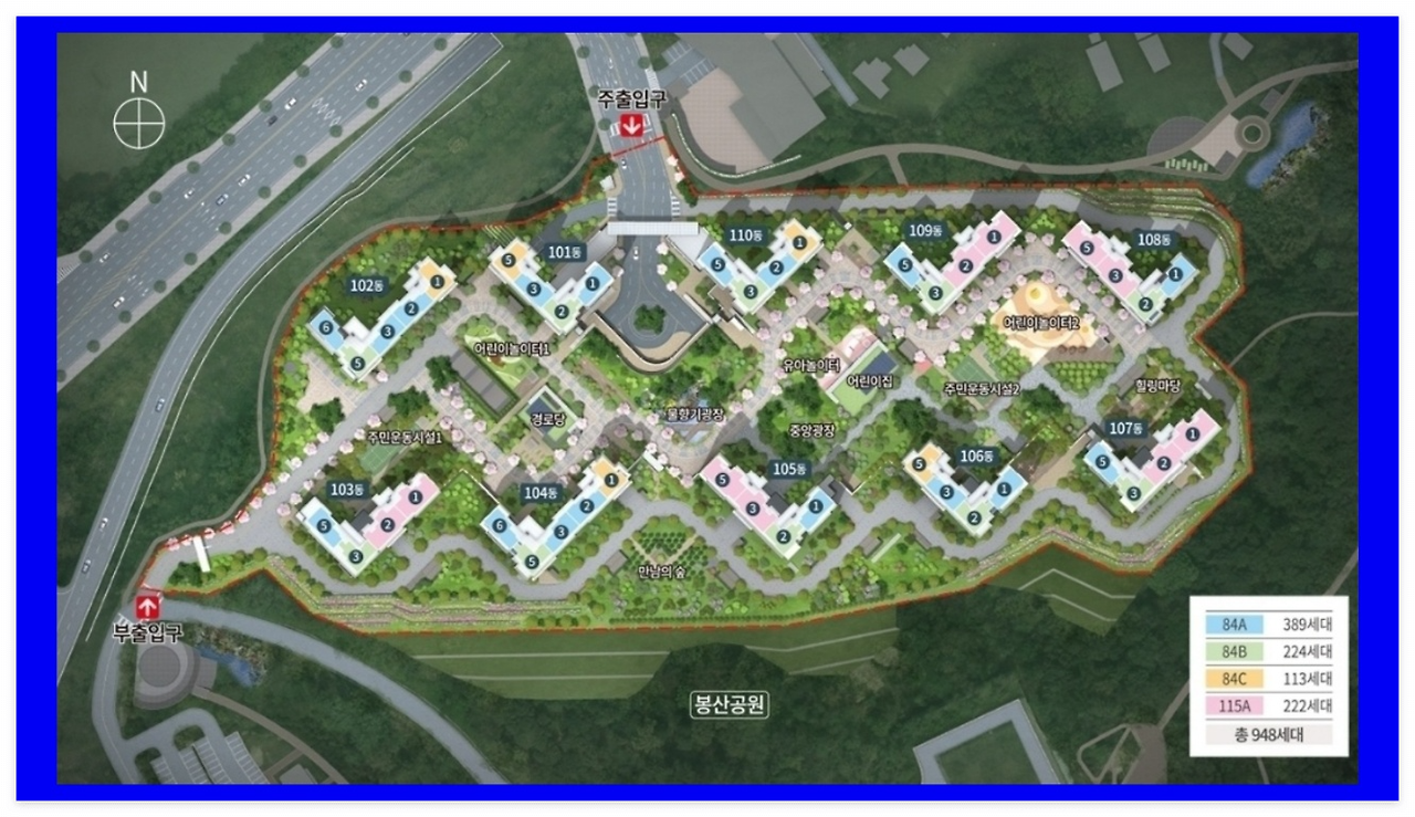 세대의 타입으로는 국민 평형으로 인기가 많은 전용면적 84㎡A·B·C 타입과 희소성이 높은 대형 평형인 전용면적 115㎡A 타입으로 구성됐으며, 총 4가지의 다양한 타입을 적용시켜 실수요자들의 선택 폭을 넓혔습니다.