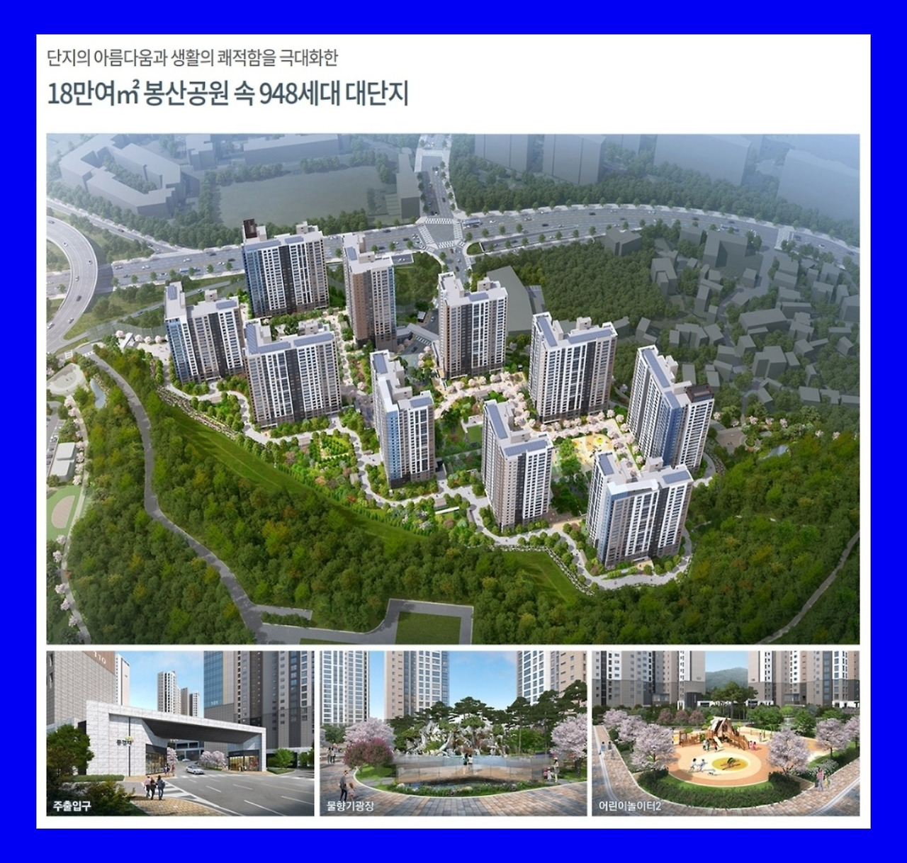 무엇보다 봉산공원과 연계돼 있어 공원 내 다양한 시설을 편리하게 이용할 수 있으며, 일부 세대에서는 봉산공원 녹지도 조망할 수 있습니다.