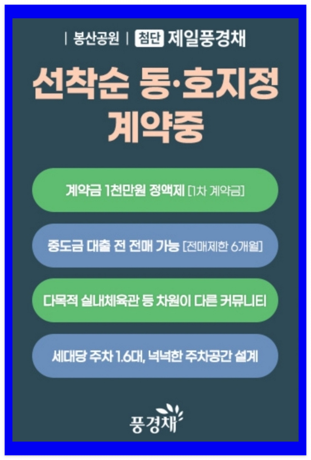 봉산공원 첨단 제일풍경채는 봉산공원의 쾌적한 자연환경과 첨단지구 생활권을 모두 누릴 수 있어 정주 여건이 우수한 대단지 브랜드 아파트입니다.