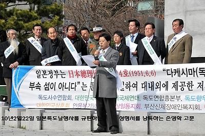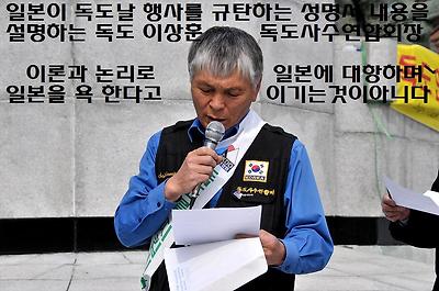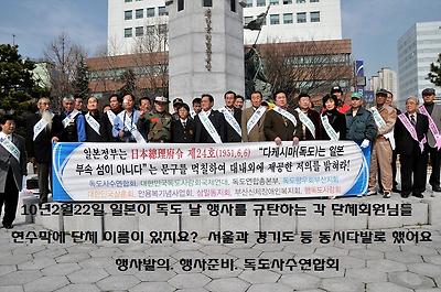 독도사수연합회가 발의를 하고 행사준비를 해서 일본이 독도날 행사 하는 것을 규탄하는,
