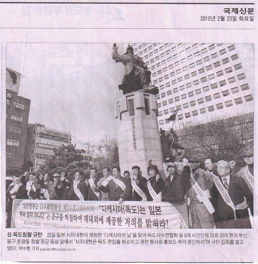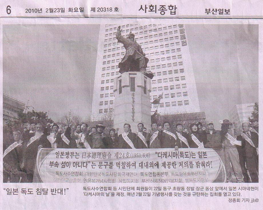 행사를 2월22일 14시에 초량 정발장군 동상에서 하고 성명서를 재부산 일본총영사에게