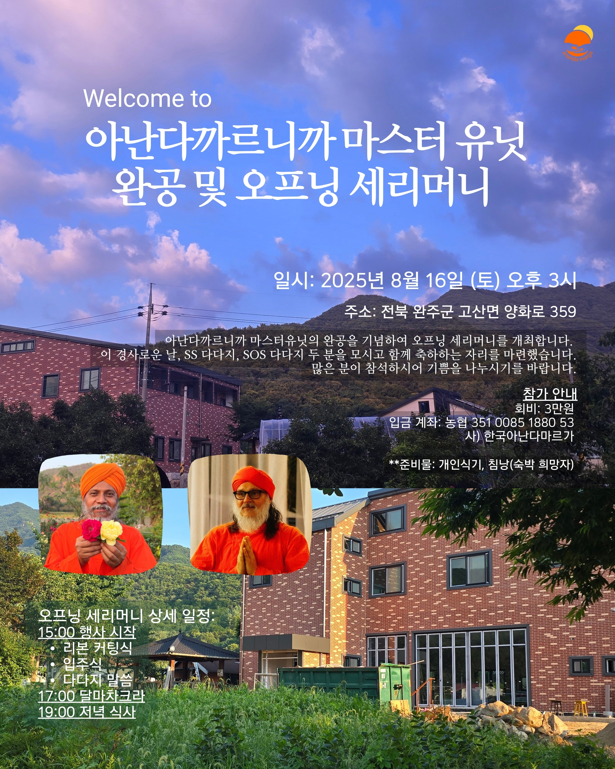 이 뜻깊은 순간에 SS 다다지 SOS 다다지를 모시고 여러분을 모시고자 합니다. 8월 16일, 아난다 까르니까 마스터 유닛으로 오셔서 우리의 새로운 시작을 함께 기뻐합시다.