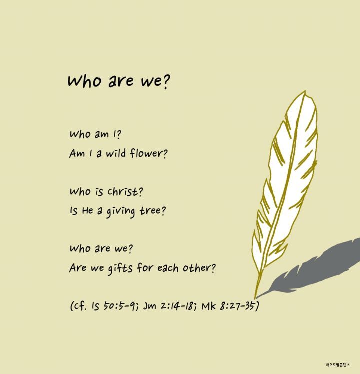 Who are we? 작성자Somin Catherine|작성시간21.09.12|조회수39 목록 댓글 2 글자크기 작게가 글자크기 크게가 우리는 누구인가?나는 누구인가?들꽃인가?그리스도는 누구인가?아낌없이 주는 나무인가?우리는 누구인가?서로를 위한 선물인가? 다음검색 현재 게시글 추가 기능 열기 북마크 공유하기 신고 센터로 신고 댓글 댓글 2 댓글쓰기 답글쓰기 댓글 리스트 작성자hyacinta | 작성시간 21.09.13 그리스도인들은 '세상'이라는 들판에'기도의 꽃' 으로매일 새롭게 피어납니다. 답댓글 작성자최루시아 | 작성시간 21.09.13 아멘~♡ 댓글 전체보기