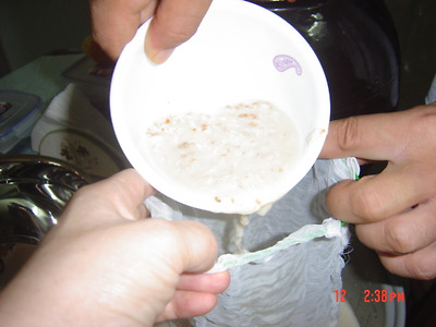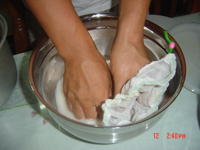 처음에는 뻑뻑하여 젖기가 힘드나 시간이 지날수록 발효가 진행되어 젖기가 쉬어 진다.
