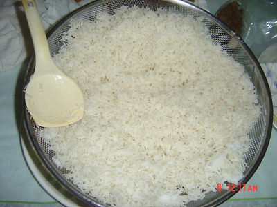 쌀을 미리 서너시간 불렸다가 꼬두밥을 짓습니다..꼬두밥이 젤로 중요함다..1시간이상을 찌고 뜸을 들입니다.골고루 펴서 식힙니다.