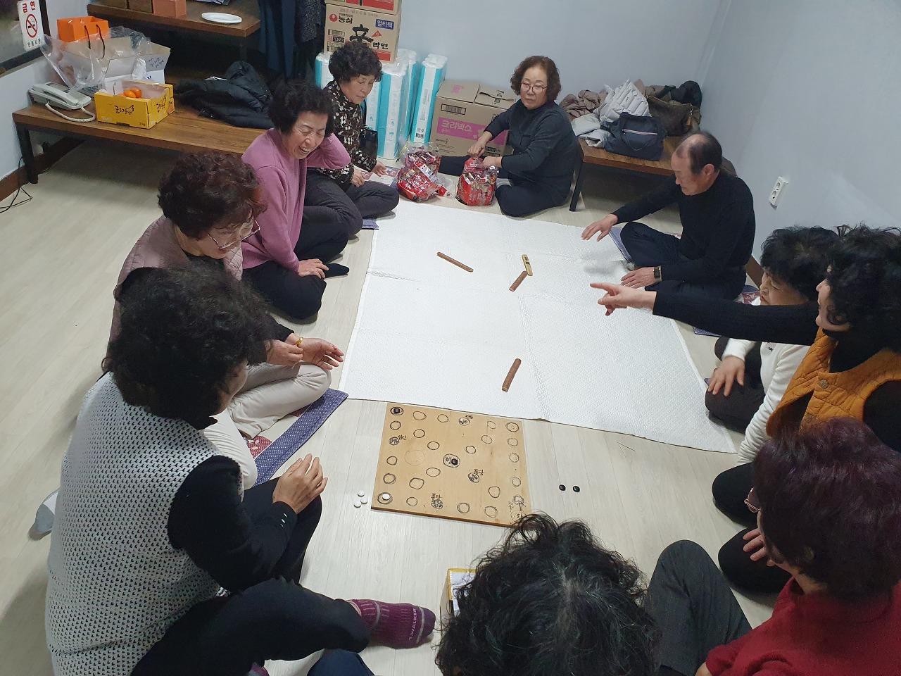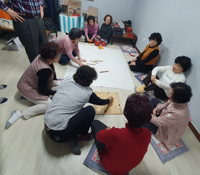 윷놀이를 하면서 즐거운 시간을 보내고