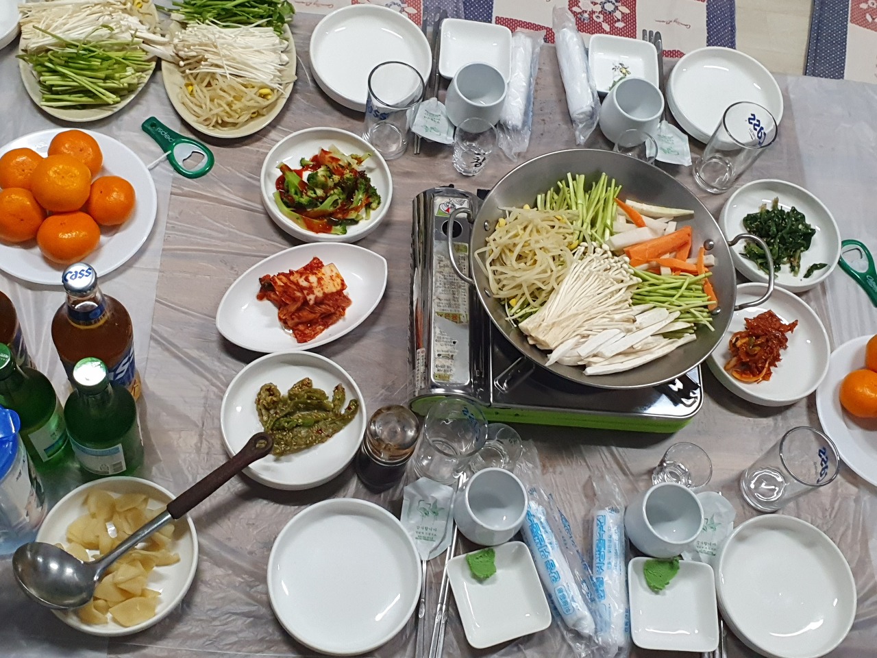 꿩고기샤브샤브로 술을 한 잔씩 나누고