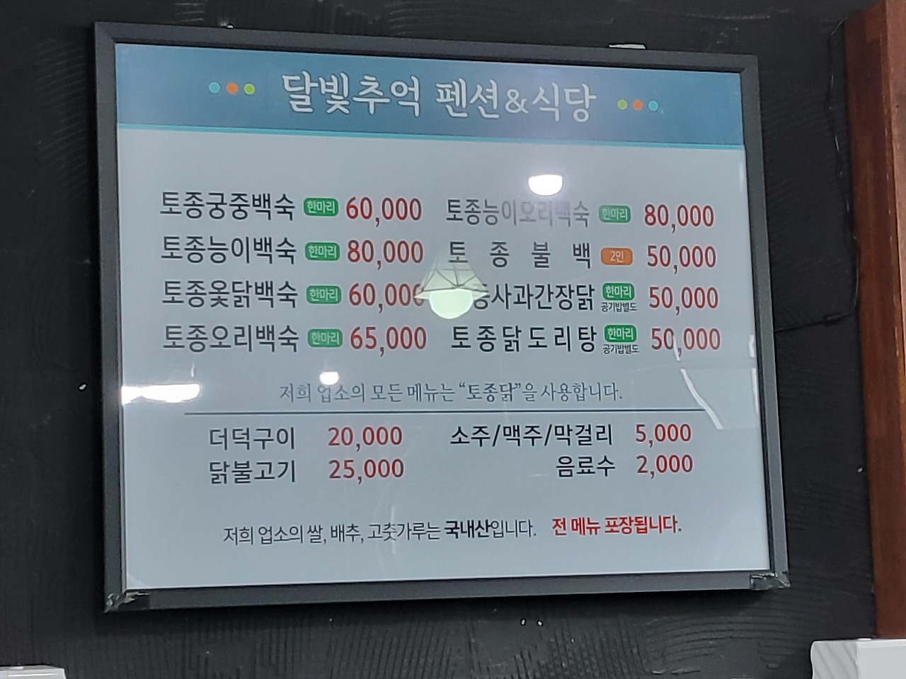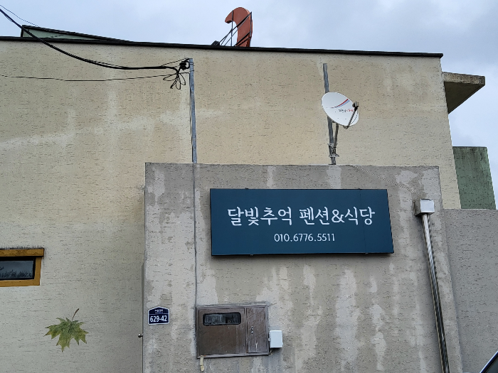 우측편에 달빛추억 펜션&식당 현수막이 보였고
