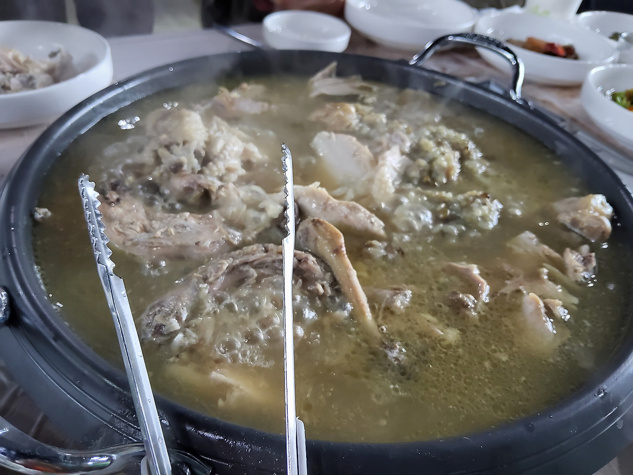 한방닭백숙으로 차려진 밥상에는