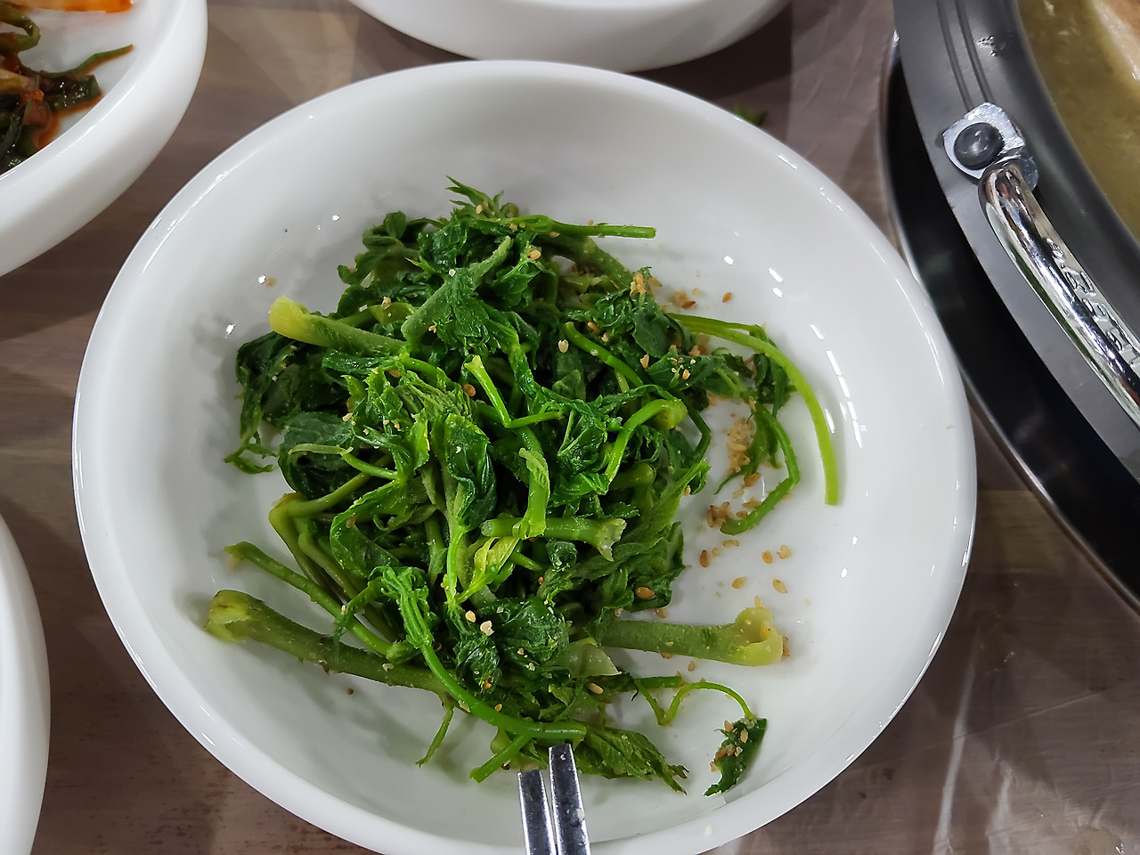 초석잠, 돼지감자, 머위 등으로 만들어진 반찬들이 차려졌다.